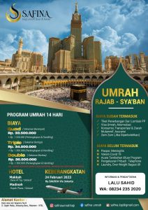 Program Umroh 14 Hari, tanggal keberangkatan 26 Maret 2023